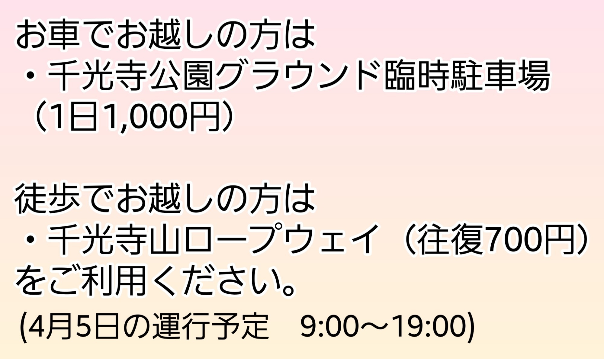 ※桜シーズン中の千光寺公園駐車場は非常に込み合います。なるべくお車は乗り合わせでご来場ください。