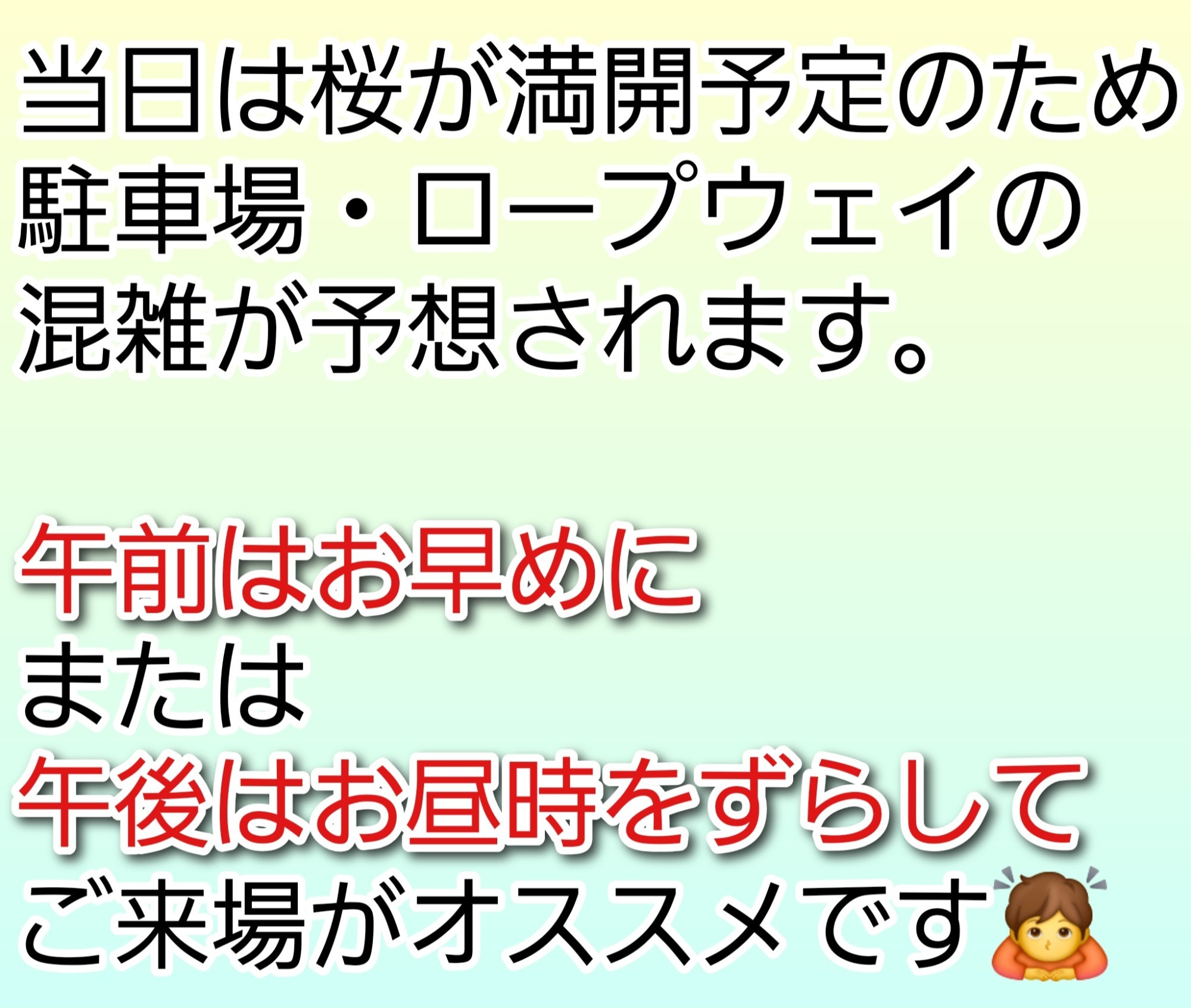 ・当日はお花見などの一般の方も多く、混雑が予想されます。